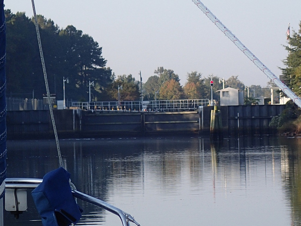 Saturday morning we were up before the sun so we could reach the Gilmerton Bascule Bridge just past Norfolk for the 7:30 a.m. opening. Then we raced to the Deep Creek Lock which is the beginning of the Dismal Swamp Canal, for the 8:30 a.m. southbound locking.