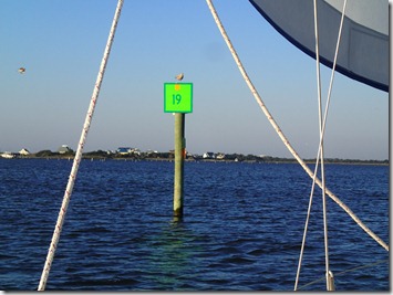 One thing we do during our long days motoring down the InterCoastal is keep track the marks to know where we are and make sure we don’t run aground or hit something .