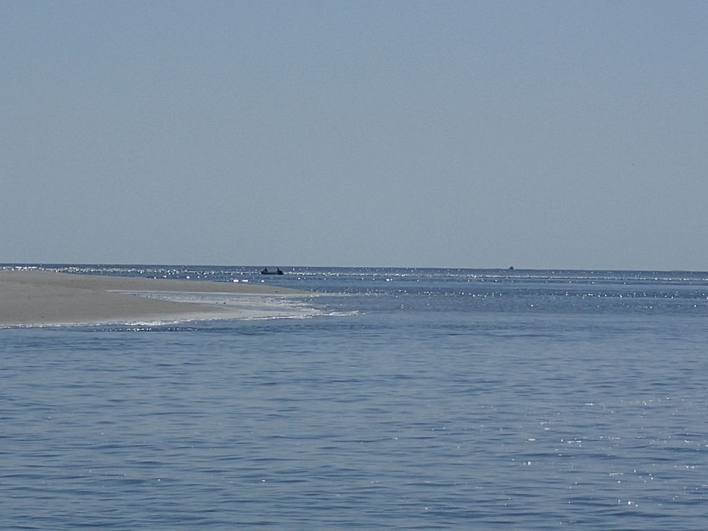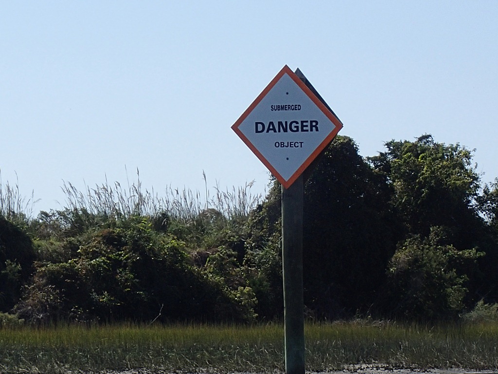 In southern North Carolina, the Intercoastal is a mostly a natural waterway between the mainland and the barrier islands on the Atlantic Ocean.  From time to time, the barrier islands are breached to form an inlet that connects the ICW to the Ocean.  The connection might be fairly direct or it can be a series of “S” curves.  Tides and storms change the course of the inlet over time and can affect the depth of water in the Intercoastal, which we are navigating.  Here is a straightforward inlet, and you can see the Ocean.