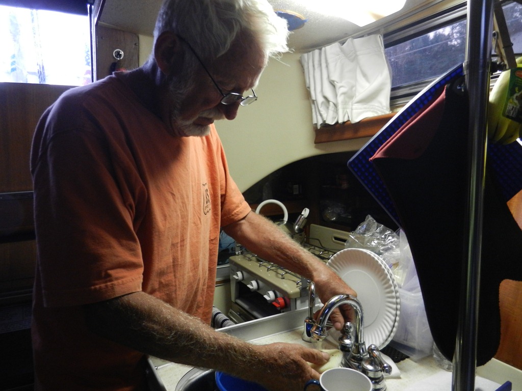 I prefer to do the cooking and Goldwin often does the dishes.  We have these adorable plates that look just like paper plates, but aren’t – from a good friend and we love them.  (I think my daughter’s PlaySkool kitchen had a bigger sink than this.)