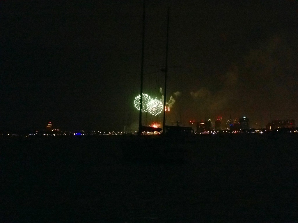 We anchored in Lake Worth, Palm Beach, Florida, last Sunday and stayed until early Wednesday.  Here are some of the fireworks we saw from our anchorage.
