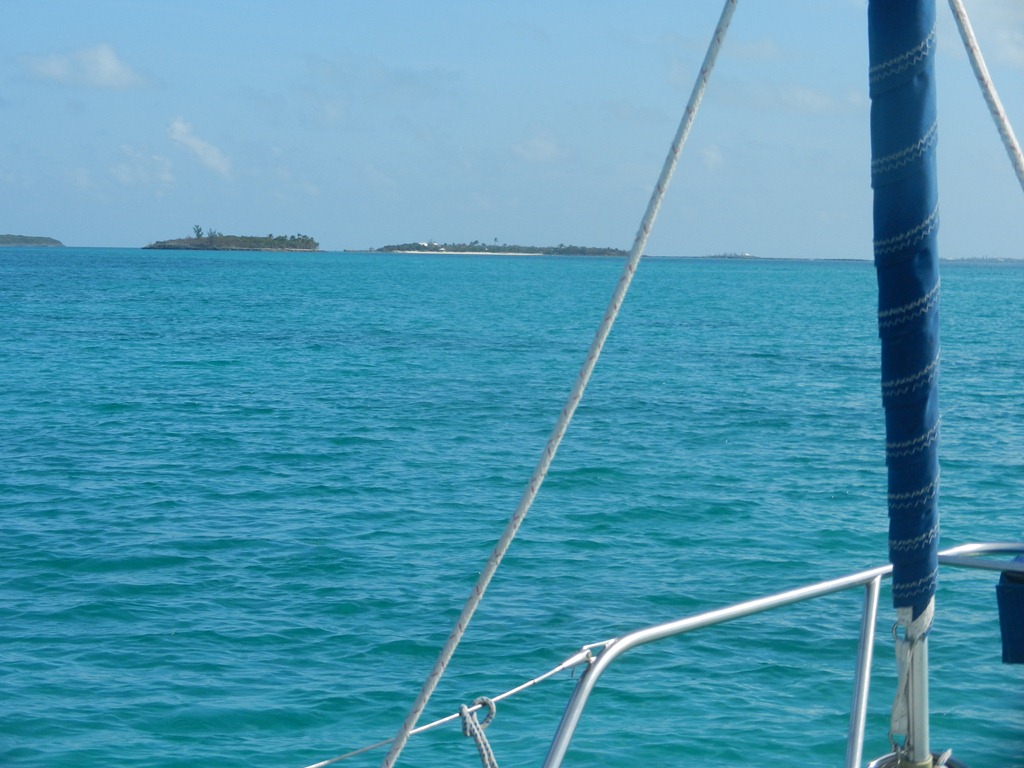 The Sea of Abaco tends to be relatively shallow, about 10-20 feet deep with a good number of sand shoals. We navigate with GPS, using a computer and handheld GPS unit. We plot a course on the computer from waypoint to waypoint, using the Explorer charts, (developed by Sara and Monty Lewis); the computer screen shows us where our boat is in relation to our course. We also follow a paper chart, marking our lat and long as we go. It’s important not to be so engrossed in the electronic navigation that you aren’t looking around at the real world – in the Bahamas the water is so clear that you can learn to read the depth by just looking. The bluer the water, the deeper it is; if it’s white/yellow, (Pinot Grigio looking), don’t go there; coral heads are black – and you really don’t want to hit one. The colors are easiest to read with a high sun behind you and can be skewed by grass on the bottom or clouds blocking the sun.