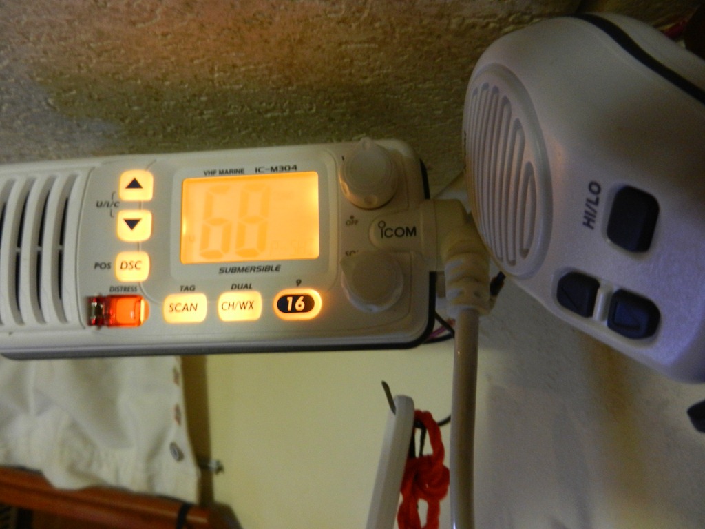 The morning cruisers’ net: This is how we get local (Abaco) news — we listen on our VHF radio, channel 68 at 8:15 a.m. Here is our boat radio; we also have a (portable) handheld.