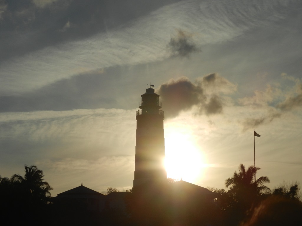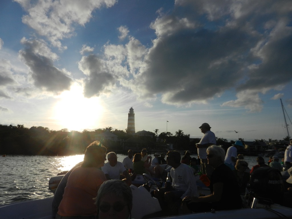 Munching, chatting, laughing, imbibing, we glide past the lighthouse, towards the setting sun.