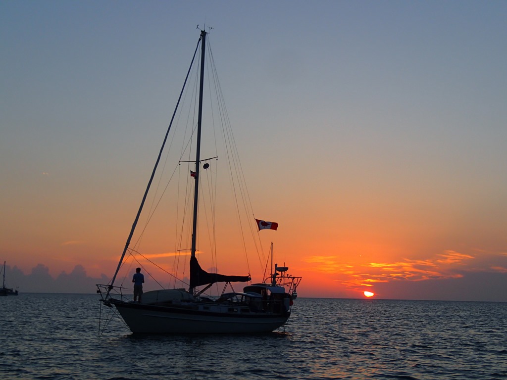 Here is George’s boat at sunset, off Great Sale Cay. You can see Jeff on the foredeck – he flew down from Ontario to help George with the crossing.