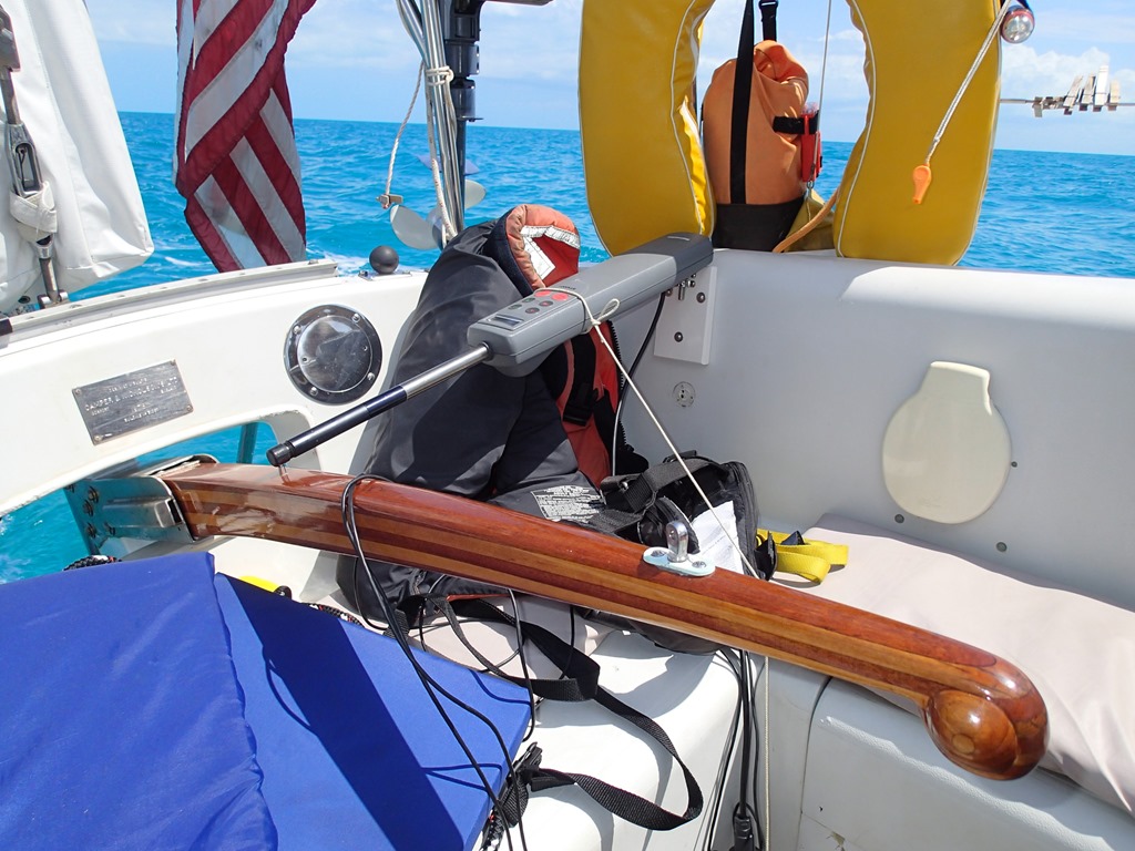 Our automatic pilot did most of the steering. It hooks onto the tiller and is able to steer the boat on a compass course. Very handy. Some of them are integrated into the boat’s navigational system and chart plotter, but not ours.
