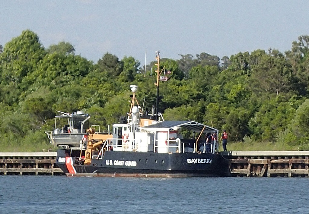 So we were happy, happy to finally reach our anchorage – the only one for forty miles. So were all of our bridge pals, except that they had arrived ahead of us, being faster. The anchorage is a basin that the miltiary dredges and uses, but lets boaters use as well – unless they don’t want to and kick you out. This evening we watched a Coast Guard buoy tender come in and tie to a big concrete dock. Later there were loud helicopters overhead, out of Camp LeJeune.