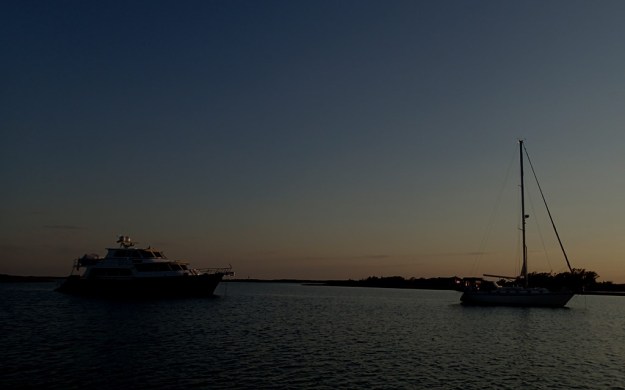 It’s such a beautiful night – I hope no one drags. Goldwin is working on his French accent in case we need it in our next anchorage.