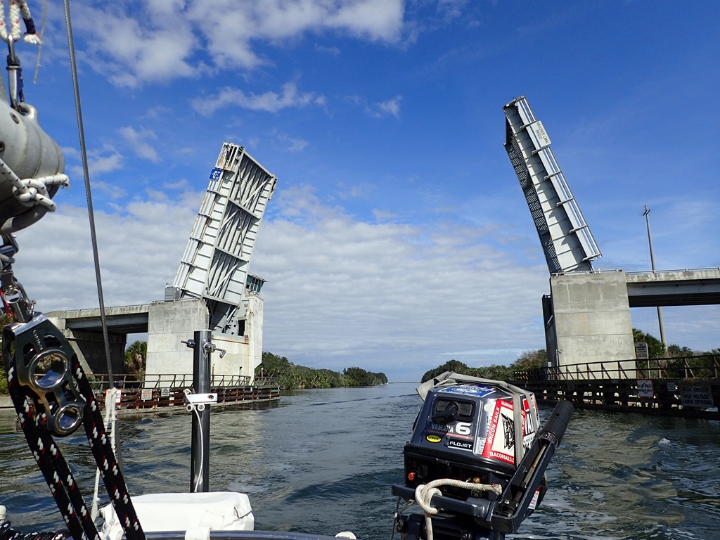We spent the last few days covering as much of the ICW as possible – in search of warm. Done with the fog and drizzle and cold of northern Florida and ready for some time in the sun. St. Augustine to Daytona Beach – 53 miles; Daytona Beach to an anchoring spot just outside the channel about 12 miles south of the NASA Causeway Bridge at Cape Canaveral – 66 miles; and from there to Vero Beach – 54 miles. We travel about 6 mph, so from sun-up to sun-down, which is about ten hours now, we can expect to max out at 60 miles. It’s hard to travel the ICW after dark and hard to anchor in the dark.