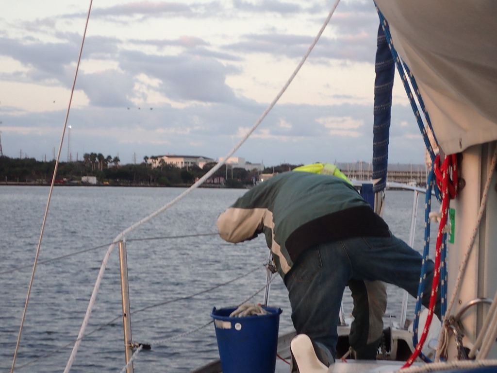 But these hours are typically interspersed with moments of panic and magic. Here is panic: Matanzas Inlet just south of St. Augustine. Inlets are tricky because the ocean really surges in and out of these little breaks in the barrier islands – lots of current. Sand on the bottom is moved around so much that the US Army Corps of Engineers has a difficult time keeping the channel markers in deep water. So instead of the green squares on poles, the marks are green cans floating on the water. And they are not usually marked on the chart because they are moved so often. Two things you have to know about Motu Iti to understand what happened. First, Motu Iti needs 5 feet of water to float. Second, when she is motoring and picks up speed, she squats down in the water – literally, the back end digs in and the cockpit (due to the self-bailing feature), fills with water – usually just to the top of the teak grating.