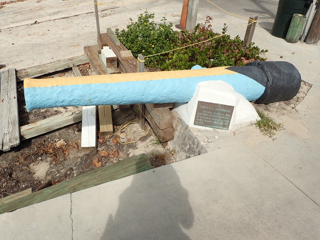 We bought books and Goldwin found the exact same boat part that had caused us so much trouble back in Florida. Here’s a very patriotic cannon – painted like the Bahamian flag. It’s actually off the Adirondack, a US warship that struck a reef off Man o’ War Cay while working to intercept Confederate blockade runners during the Civil War.