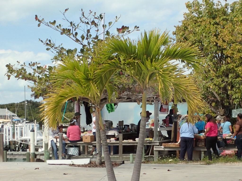 Saturday morning we listened to the net (the cruiser’s interactive radio show which shares weather and other information, including the day’s events), and discovered that the Man o’ War Cay flea market was that very day . We hustled over to the Froggie’s boat, but it was full at 80 passengers – we, of course, had not bought tickets in advance.