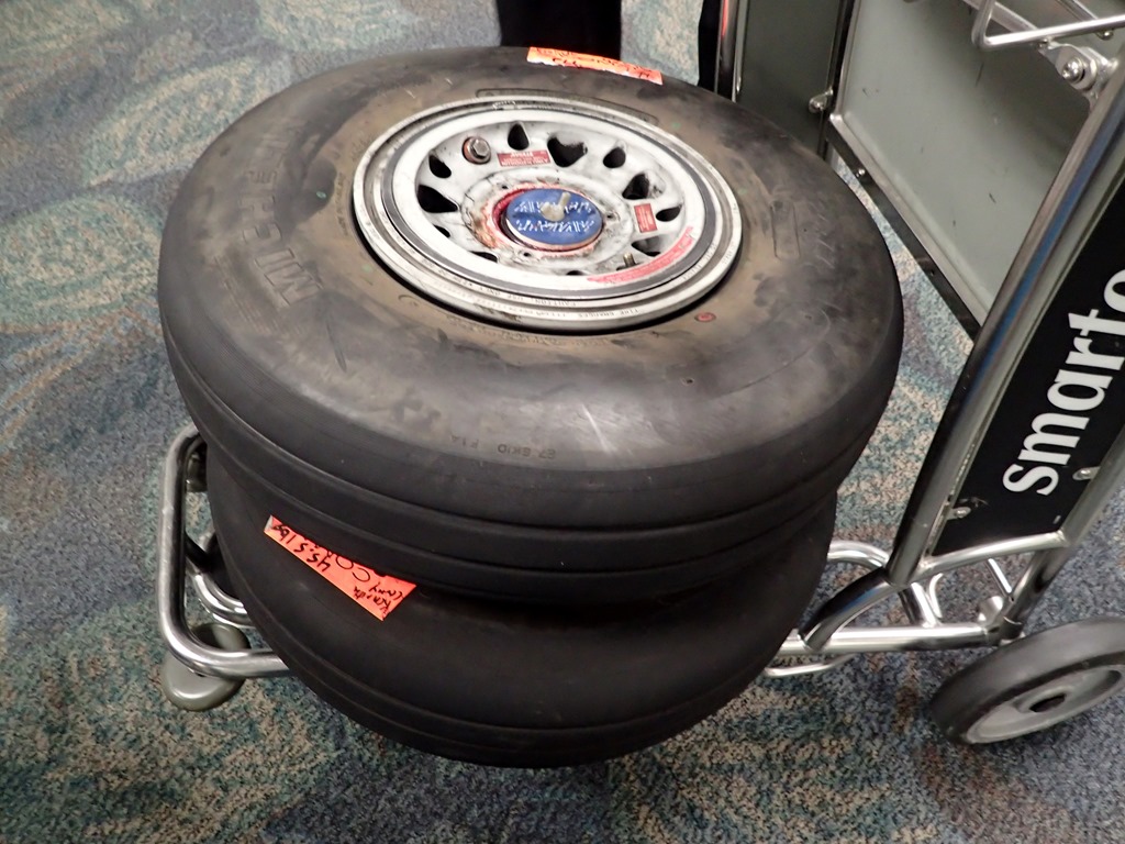 We all waited impatiently while the tires were changed. Here they are (after being flown back to FLL):