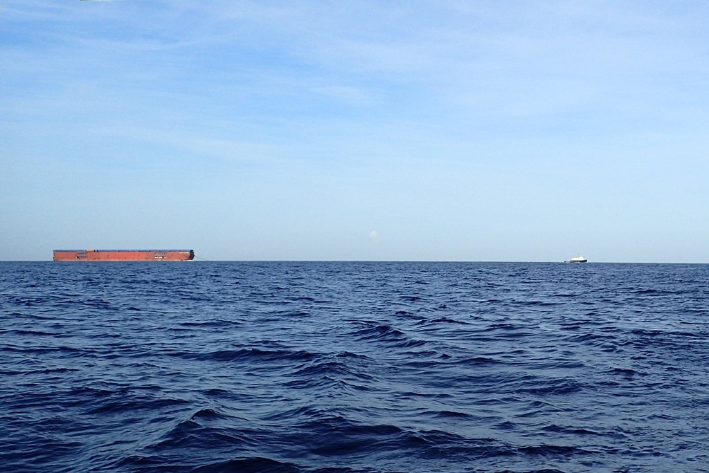 Until there are other boats.  Some are really big.  There was a cruise ship hanging around the entrance, waiting for morning, I think.  Also this tug and barge northbound right in the middle of the Gulf Stream, for maximum speed.