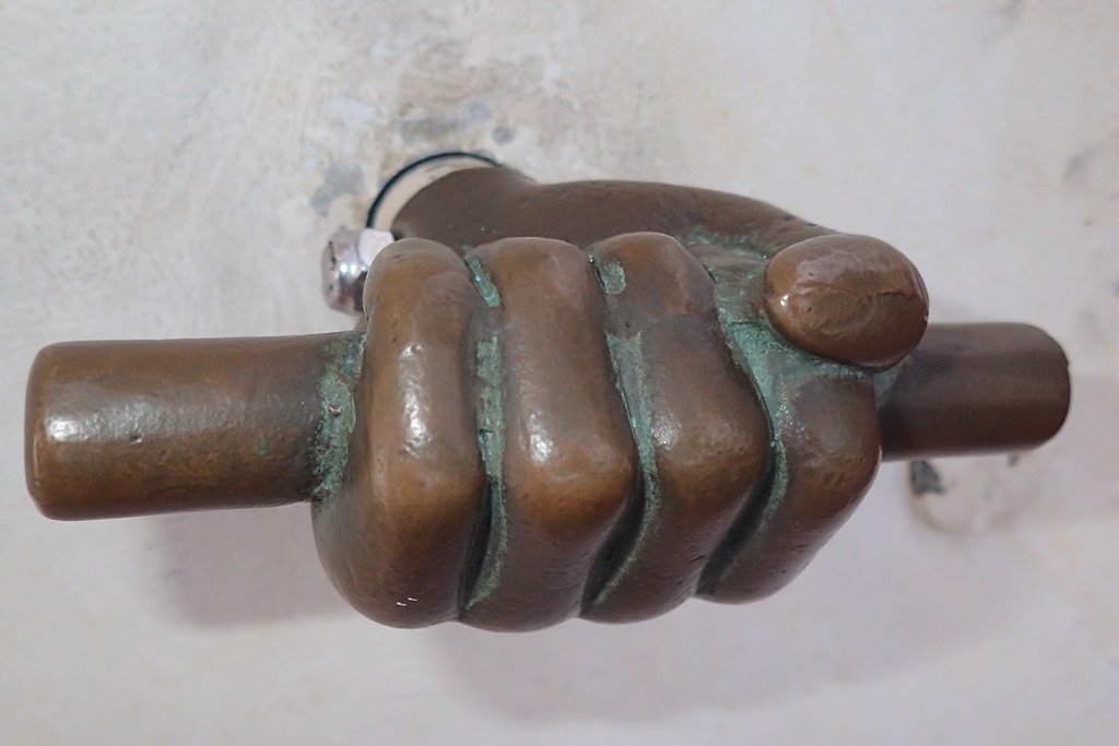 Once at the top, a little door, with this adorable cast bronze handle – in the form of a hand – allows access to an outside landing.