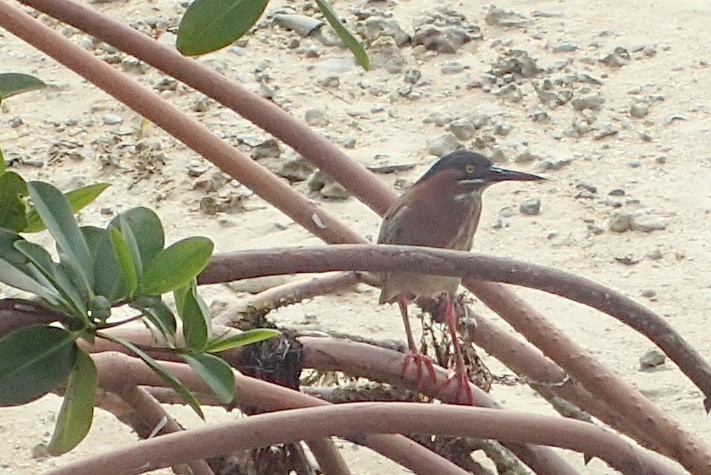 After our tour of the lighthouse, we wandered along a path towards the harbor entrance and came upon a wide wooden bridge to, we suspect, a housing-development-to-be.  It was a great place to see mangroves.