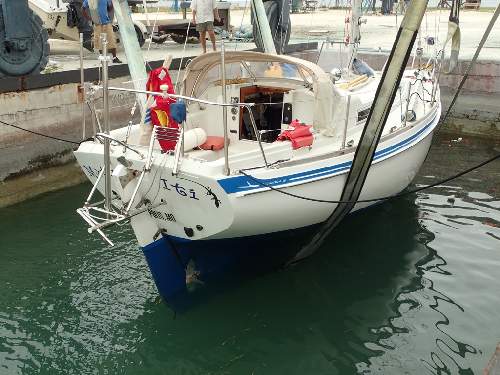 Her bottom had been just been painted last Christmas and she came out of the water very clean. But the zincs were added after the paint and the bolts that attach the zincs were covered in new growth.
