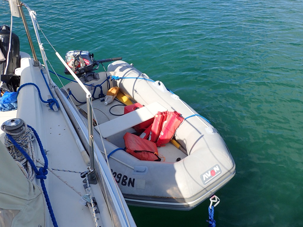 Right off, we inflated the dinghy so we could get to town. It went from this: