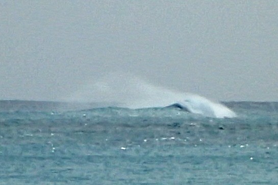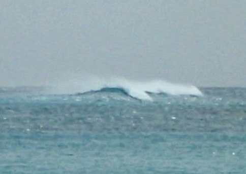 Here is what a massive wave offshore looks like as the wind blows off its top. (Too far away for my camera to bring into proper focus.)