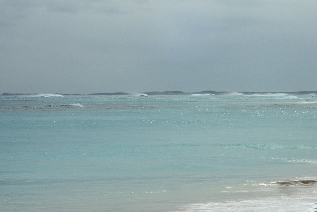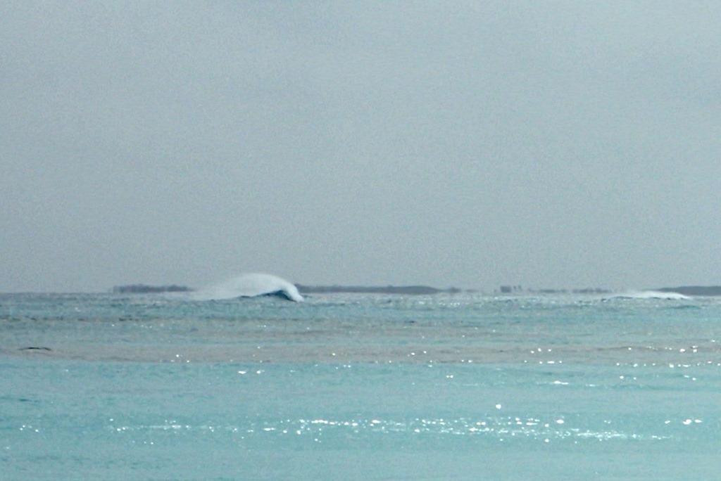 A series of fronts with gale-force winds has produced monster waves. Although the ocean side of Elbow Cay is in the lee of these strong westerlies, waves continue to build offshore. Look out over the ocean and you see mountains. Mountains of water. They move along at the end of the earth – along the horizon – and build, flatten slightly, and build again. Massively tall.