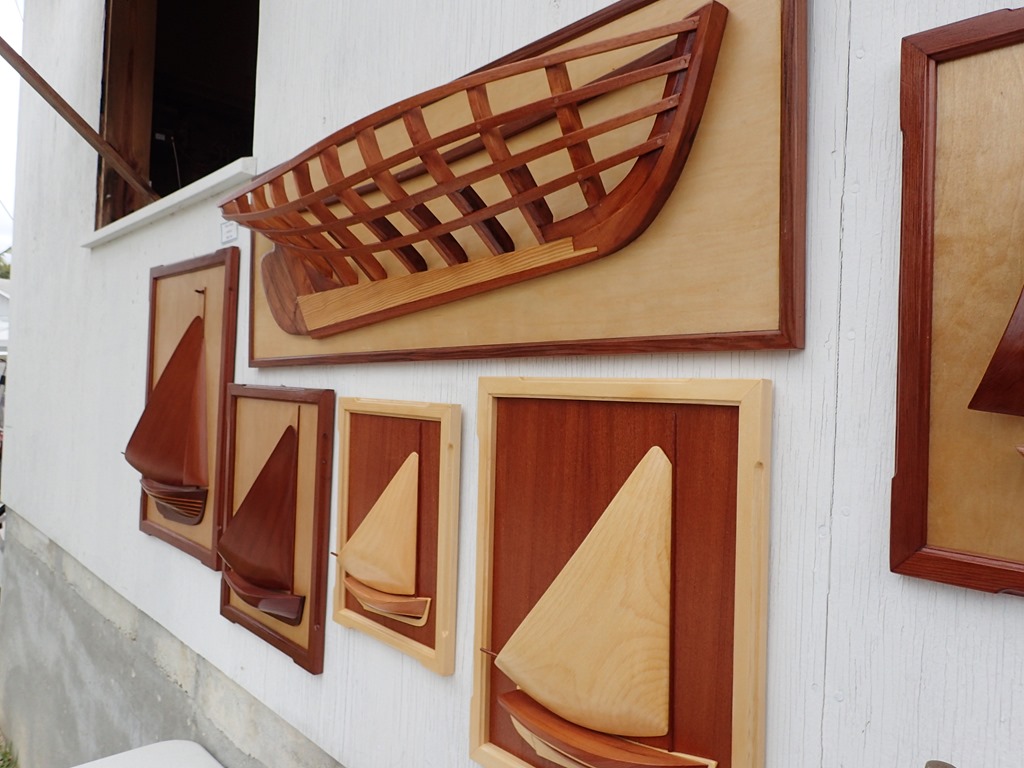 We have a collection of his half models of Abaco dinghies at home; here are our new additions.