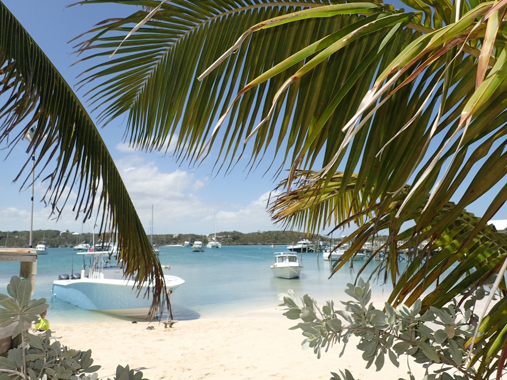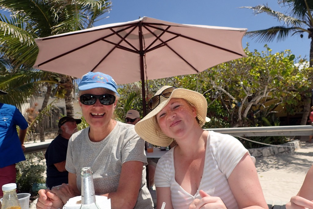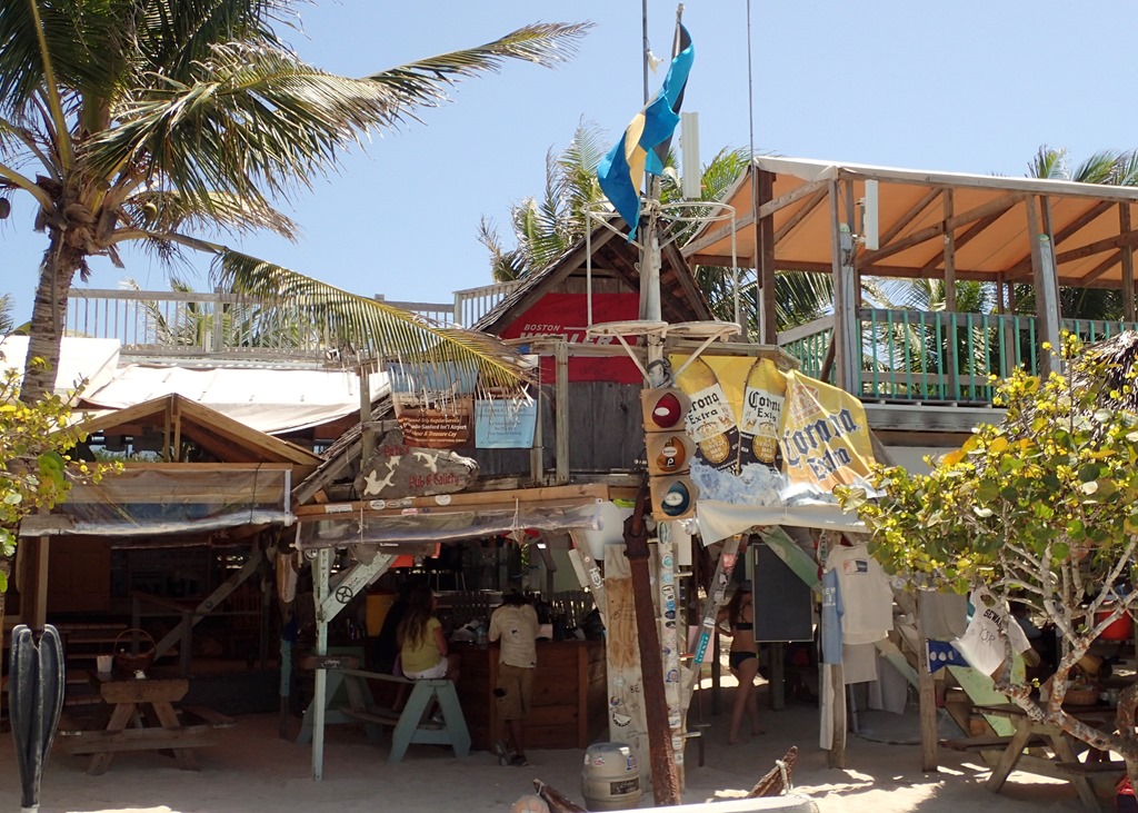 A ship-wrecked sort of beach restaurant with a sand floor. T-shirts and other souvenirs of its many visitors line the walls and hang from the ceiling. All overlooking a lovely protected harbor.