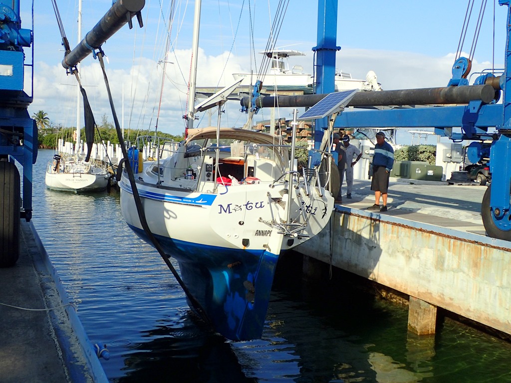 Motu Iti moved into the service well of Abaco Yacht Services before 8 am on Friday morning. Ready to be hauled out for the summer.
