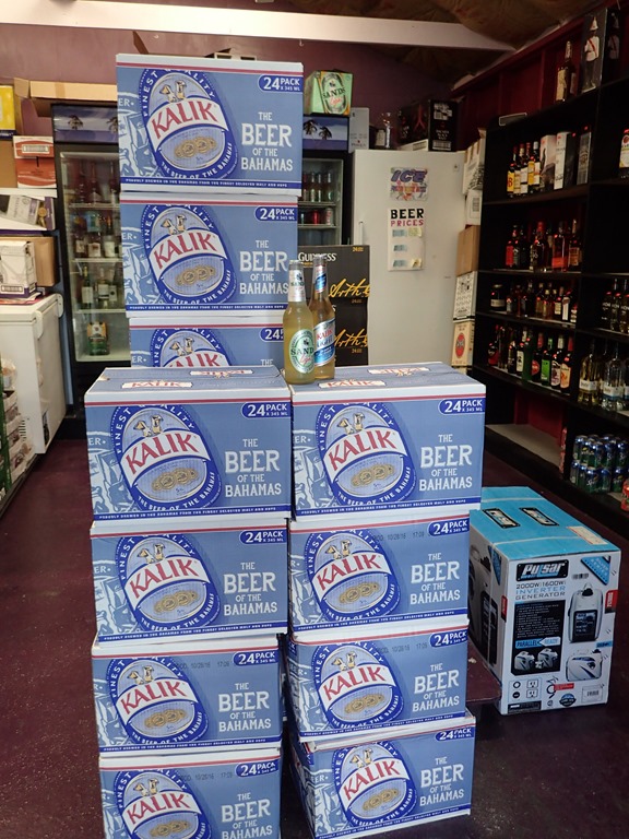 Meanwhile, the beer shortages had their impact. In some locations, beer was rationed – only 12 bottles per buyer at one liquor store near here. And with three weddings last week-end on Elbow Cay, venues were scrambling. But good news! On Tuesday HopeTown’s main liquor store received its first major shipment of Kalik beer.