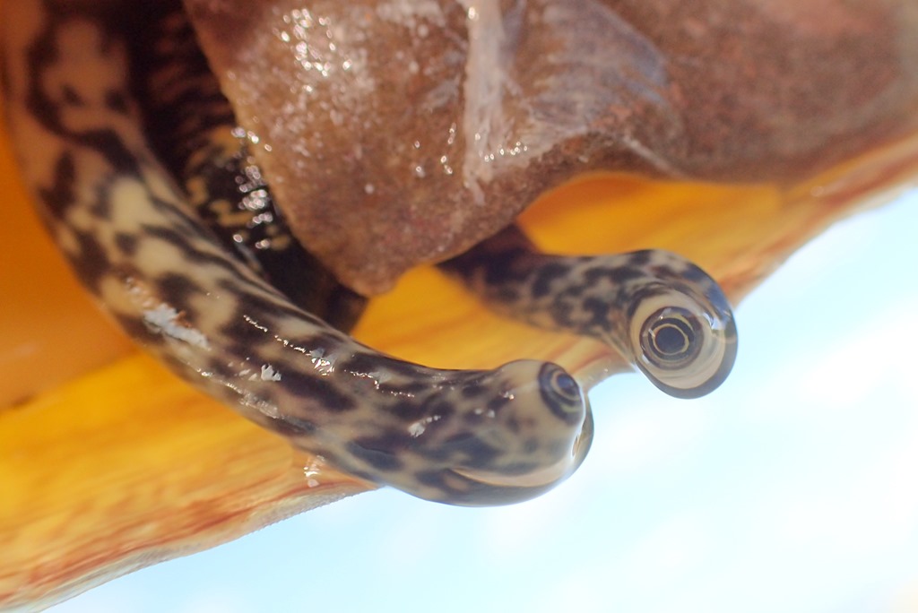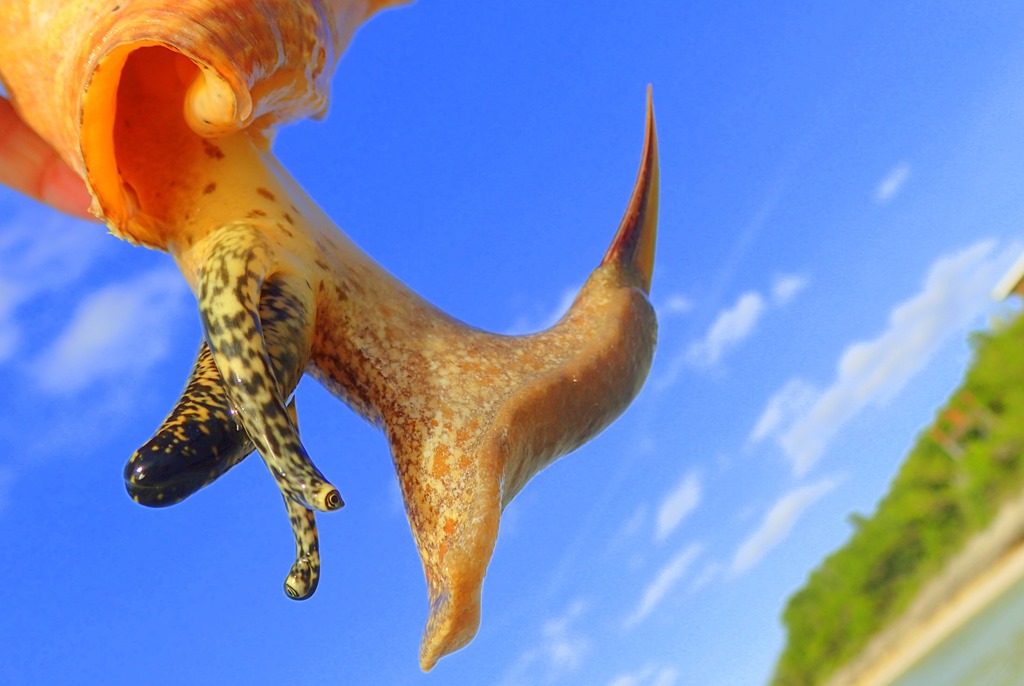 Here’s the animal that lives inside the conch, peering out.