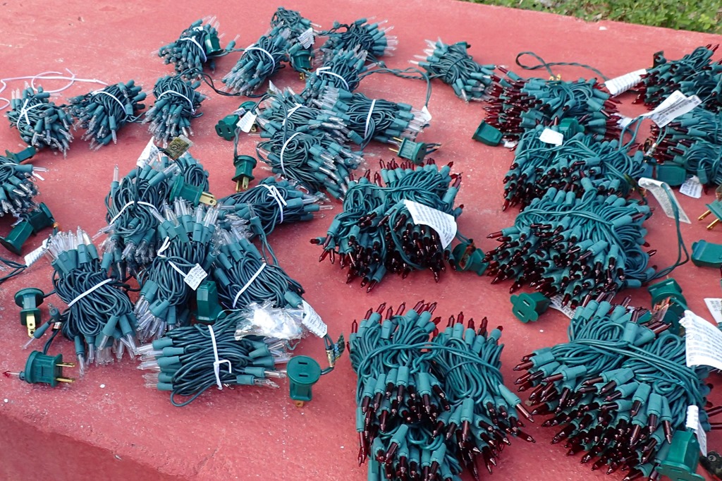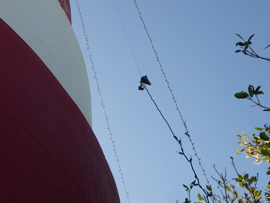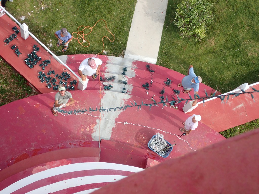 We worked counterclockwise around the lighthouse – about a dozen strands of lights.