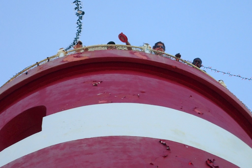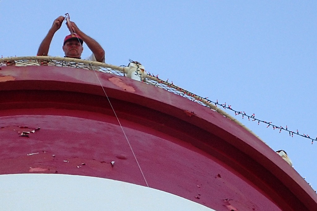 And you need a crew at the top of the lighthouse on the gallery deck to attach the other end of the lights to the lighthouse. I worked at the top.