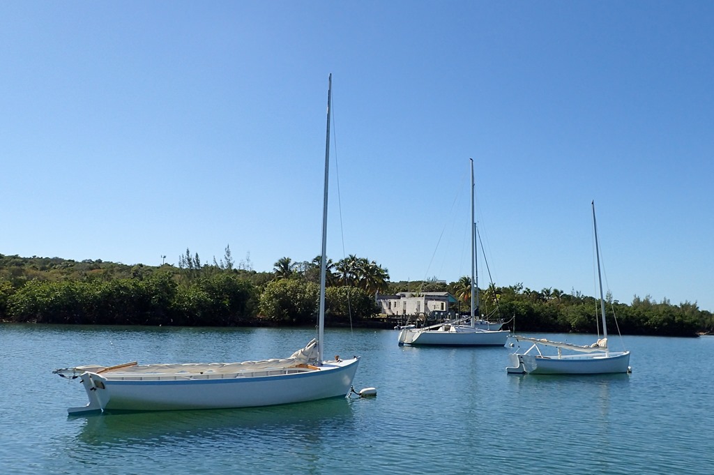 Members of the HopeTown Sailing Club descended on Cracker P’s via skiff and run-about, given the lack of wind for sailing. (We went from 35kt winds to zero in three days.) We hopped a ride on one of the boats, leaving HopeTown harbor southbound. But first a stop to check out the Abaco dinghies moored in Fry’s Mangrove, a beautiful harbor south of the settlement of HopeTown.