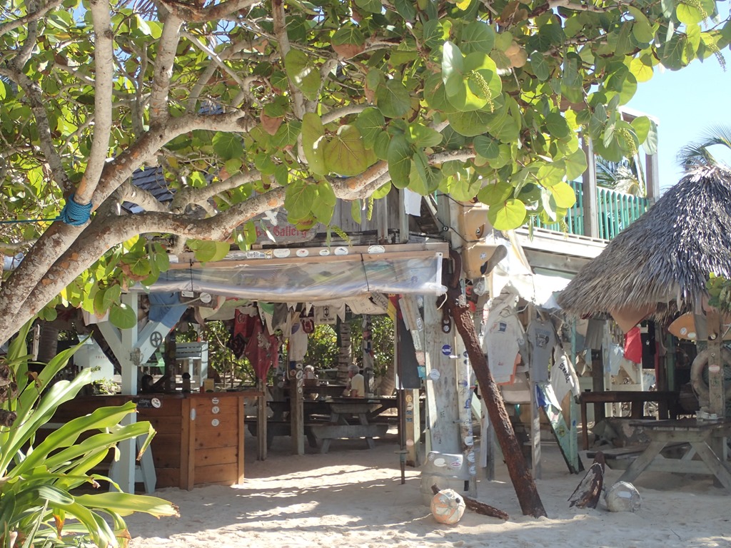 We enjoy a fruity rum Blaster and a grouper sandwich with corn n’ rice and pineapple/walnut coleslaw.  Yum, yum.  What an iconic beach bar.