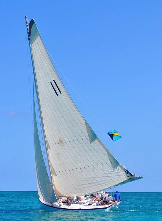 Fifteen of us helped get Rage ready for HopeTown Sailing Club’s race day.  She’s a 28’ Class A traditional Bahamian racing sloop, built nearby at Man O’ War Cay.  [Here is a file picture.]