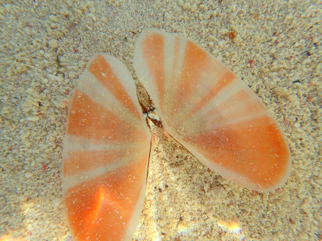 The dead ones are pure white. Sunrise tellin’ is the name of this colorful shell.