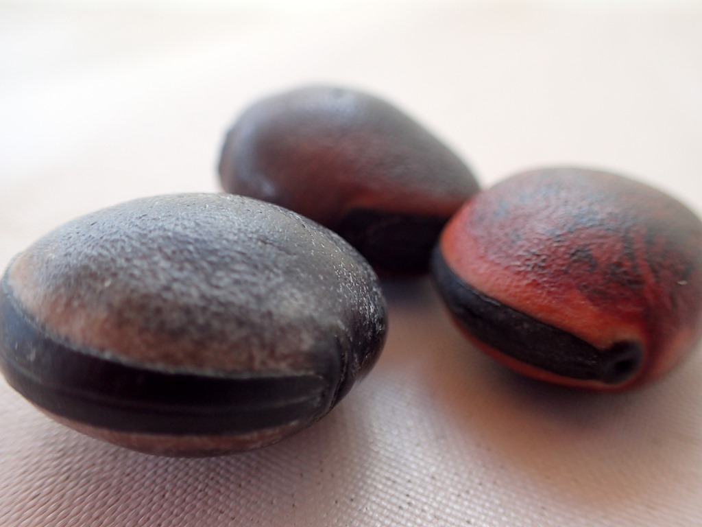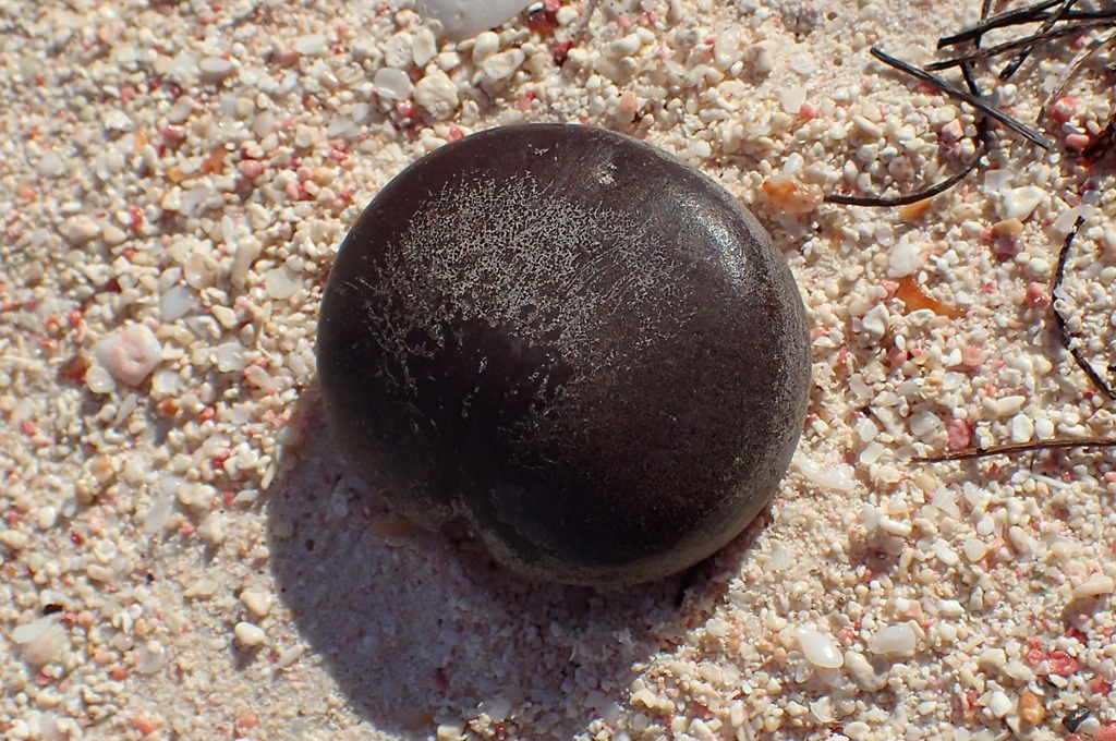Sea beans, a/k/a drift seeds, fall into freshwater rivers (like the Amazon) in rainforests and on tropical shores, are carried to oceans and then drift on worldwide on ocean currents. According to tests, they can float for decades. Their buoyancy comes from an internal air pocket. Even after being deposited on a beach, the tide and waves can reclaim them and whisk them to another shore. Sea beans have a hard outer covering that can be sanded to a fine shine and used in jewelry.