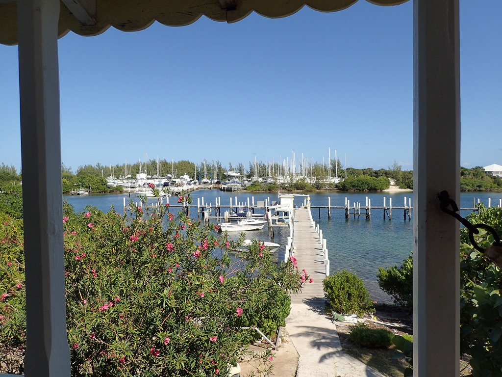 Just before Thanksgiving, we left all the moving boxes – unopened – in our little CA cottage, and flew to the Bahamas, joining Motu Iti at the Abaco Yacht Services boatyard in Green Turtle Cay.  Here’s the view from our rental across Black Sound, looking at the boatyard.