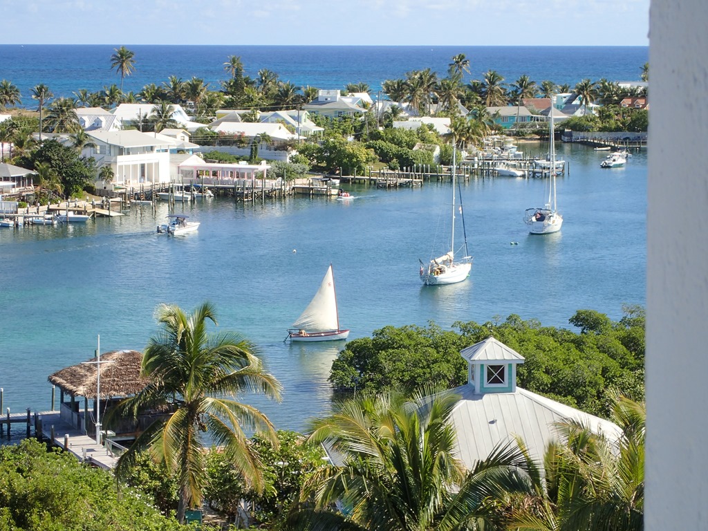 What a view.  There’s an Abaco dinghy sailing – and Motu Iti on her mooring.
