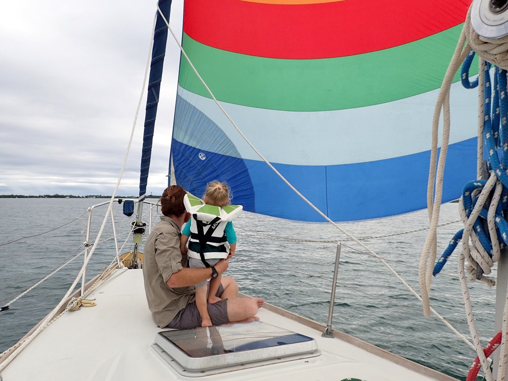 Christmas Day. Let’s go sailing on Motu Iti. We’ll raise the sails at the mooring and sail out of the harbor.