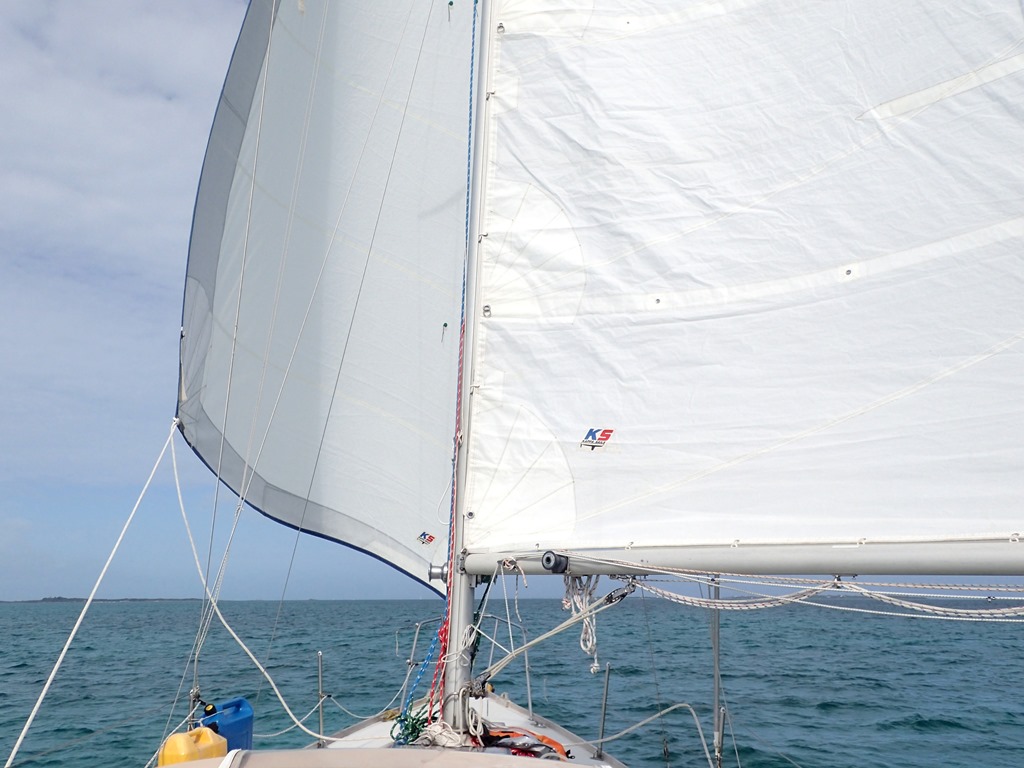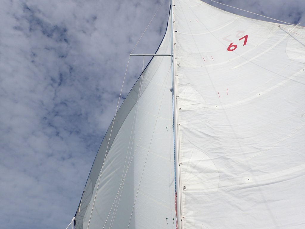 A relaxing downwind sail in a light breeze – wing on wing (the headsail on one side and the mainsail on the other).
