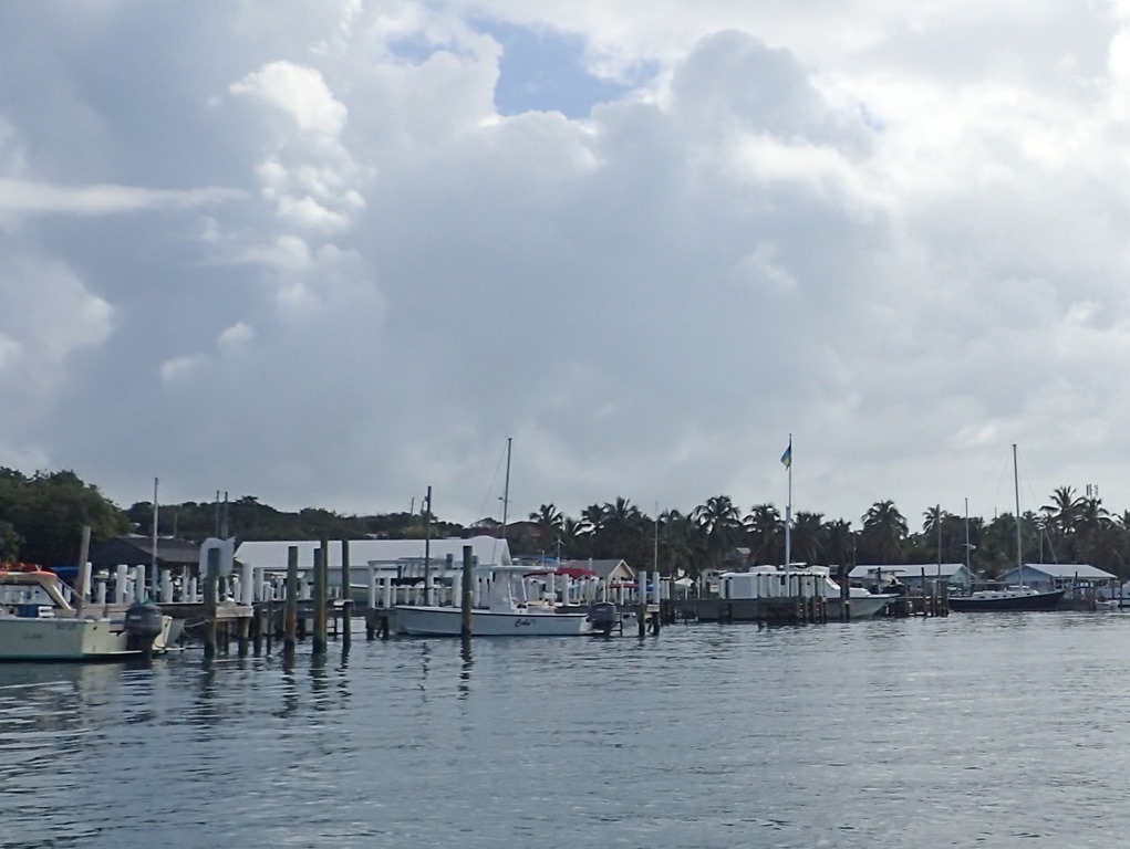 The settlement on MOW is on the north side of the harbor, with moorings between it and Dickie’s Cay, on the south side.