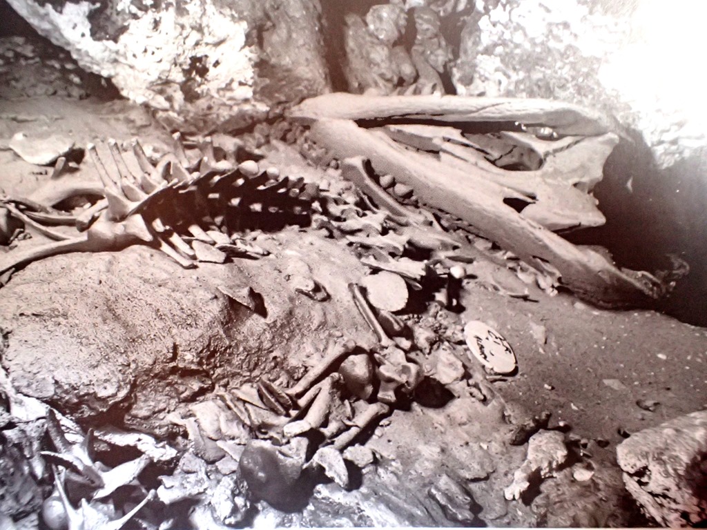 Here’s what the skeletal remains of the croc looked like when they were first discovered underwater, during a cave dive.   Scientists in the Bahamas have discovered preserved remains of many animals and vegetation in caves and in blue holes – both those inland  and in the ocean.  The limestone that makes up the islands is porous, creating many drainage areas (including blue holes).  Sediment in the holes also reveals past climate and sea level changes.