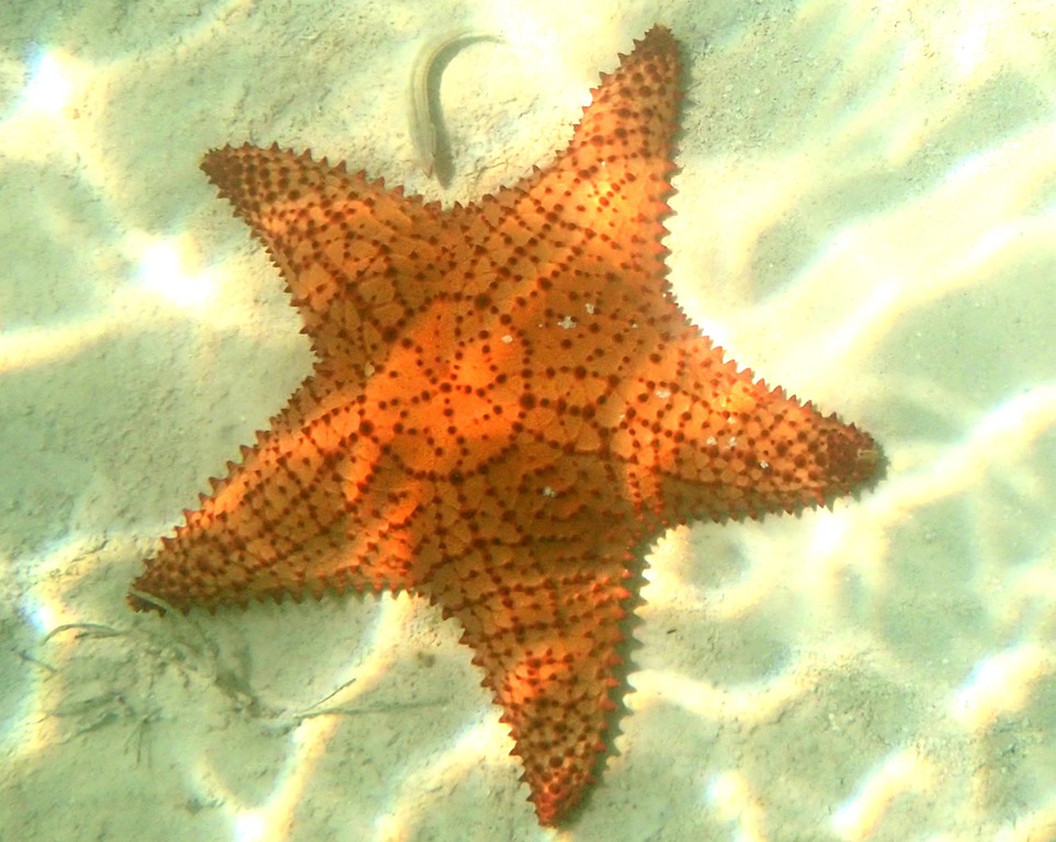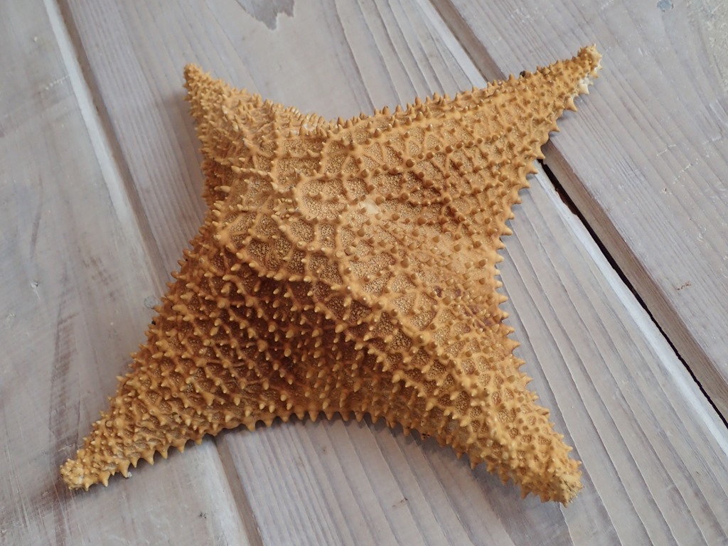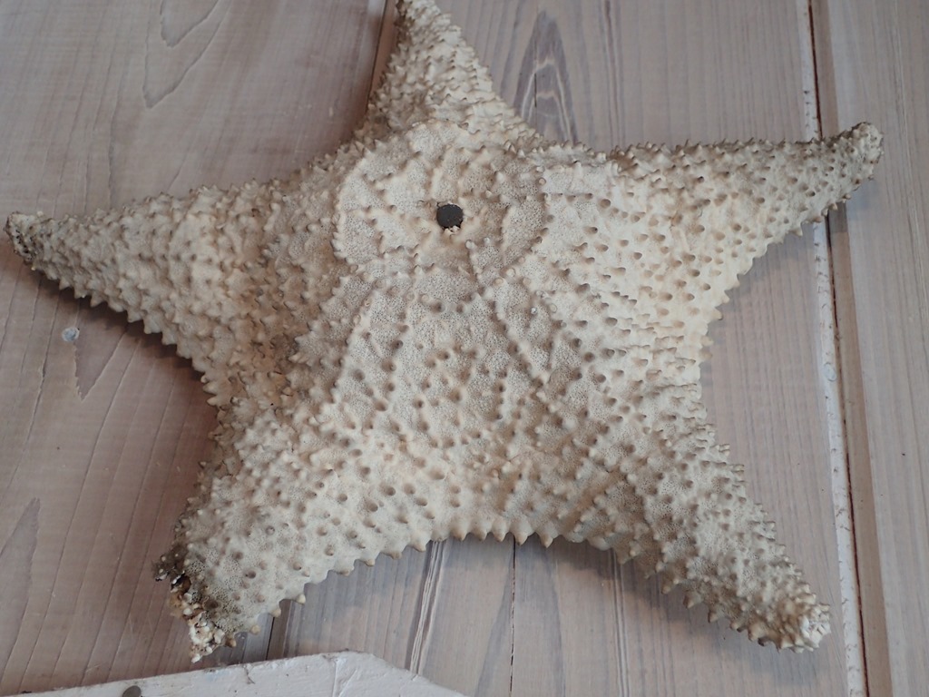 Sea stars encompass a variety of colors, shapes and sizes. A friend here has the following hanging on the wall of her adorable oceanside cottage. A typical five-arm sea star:
