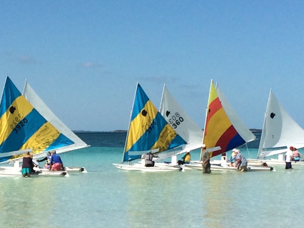 Race Day – nine women sailors had a blast sailing Sunfish on the beautiful Sea of Abaco. Competing in the Di Hunter Women’s race. All for fun.