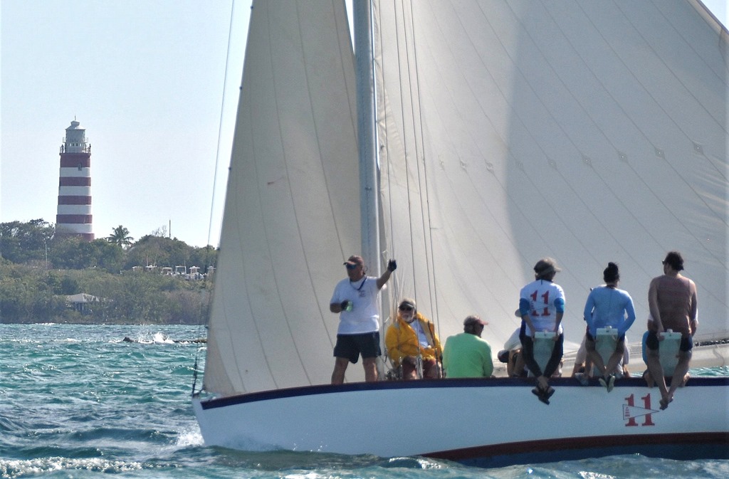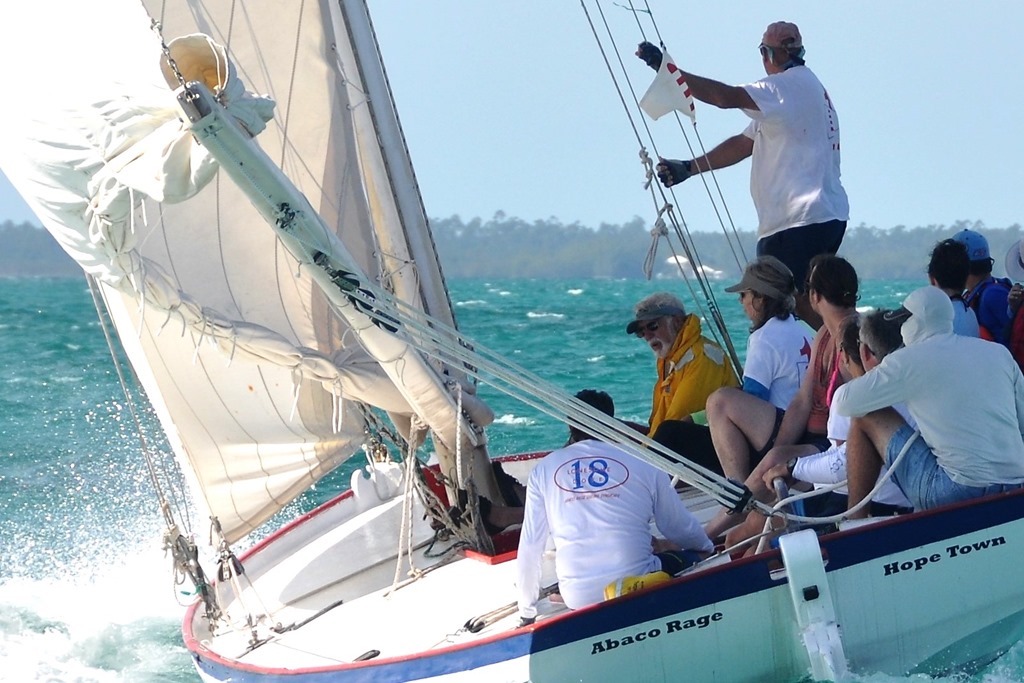 Less than 24 hours after we’d tied up to our mooring in Hope Town harbor, we were aboard the Abaco Rage for Race Day. The Hope Town Sailing Club sponsors sailboat races every other Wednesday for all comers – old and new (the boats and their owners), racers and cruisers. This is the Abaco Rage.