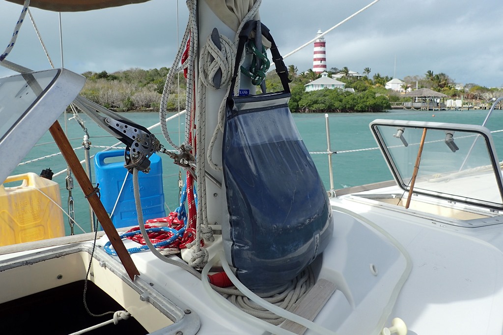 Lack of sun means our solar panels can’t make electricity for us and we have to run the engine and make power with the alternator. It also means our solar shower won’t work. Goldwin managed a shower yesterday with tepid water – not too much screaming. (And the power was on all of Abaco – a fault at the power plant – we weren’t the only ones.)