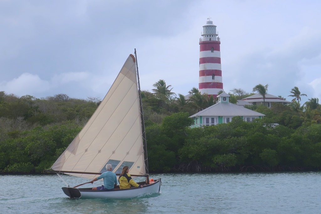 And by the following morning, the harbor was back to normal. An Abaco dinghy cruising past the lighthouse.