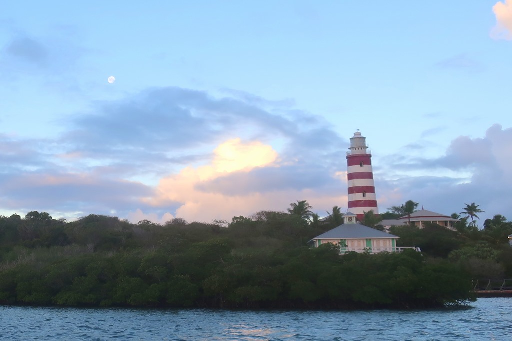 Motu Iti is on a mooring at the entrance to Hope Town Harbour – in the shadow of the Elbow Reef Lighthouse.