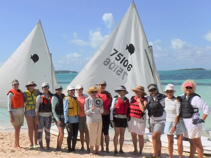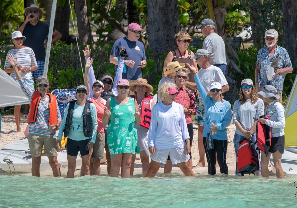 I’m in a bright orange lifejacket on the left, raising my arm (and soaking wet); Goldwin is standing behind the women racers, on the far right.  The race is named after Di Hunter, a long-time (former) Sunfish sailor, who sails her catamaran to Hope Town every winter from Massachusetts.  She’s 89.